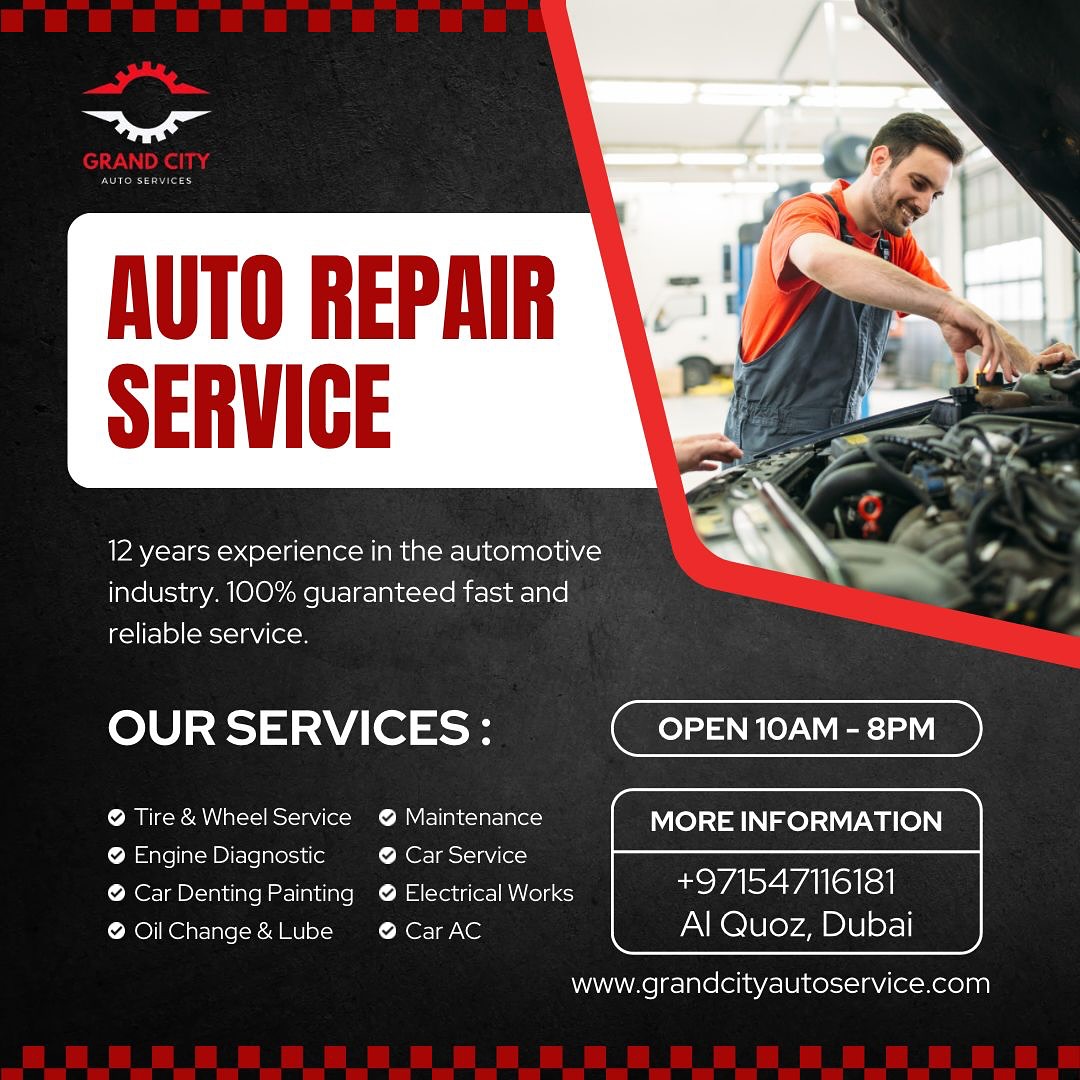 Grand City Auto Services in Al Quoz is the best Car Workshop Dubai that offers the best car repair and service in Dubai.We are Service provider specializing in comprehensive car repair and Service maintenance, tire services, Car AC Service, Wheel Alignment, Car Battery ,Electricity, Mechanical Works, Oil Change ,With a commitment to excellence and customer satisfaction, we have established ourselves as a trusted name in the automotive industry. We deal Into All kinds Of Car Brands Like Rolls Royce, Mercedes, Ferrari, Bentley, Audi, Porsche, BMW and All Economy Class